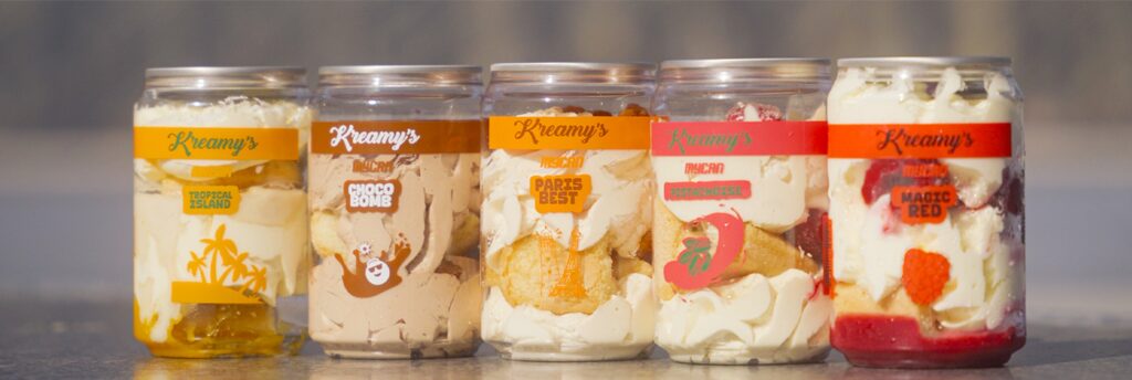 Point important, tous ces desserts sont immédiatement surgelés et fermés par un opercule en alu. Ils se conservent donc longtemps et sont consommables 3 à 4 jours après décongélation. Avec ce type de conservation et de packaging, Kreamy’s s’adresse à tous les amateurs de nomadisme alimentaire, que ce soit au bureau ou en outdoor sans oublier les modes de distributions automatiques, les lieux de snacking et de vente à emporter et, bien évidemment, les rayons surgelés de la grande distribution. Les jeunes urbains sont la cible privilégiée de Kreamy’s qui vise également le marché halal qui connait une croissance importante sur le vaste marché de la street food.
