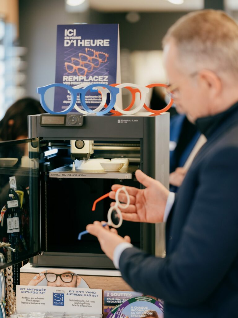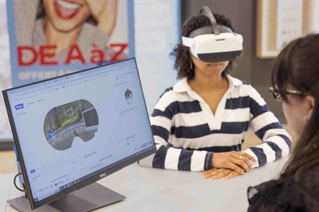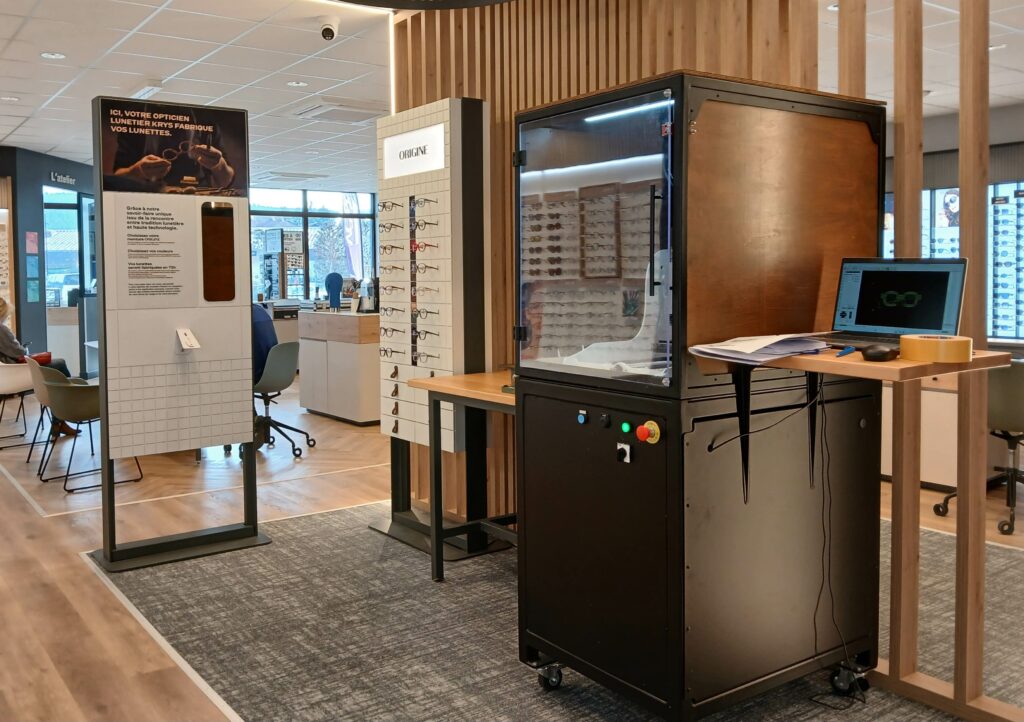 Dans le même temps, Krys développe de nombreux partenariats comme avec le casque Eyesoft de prise de mesures en réalité virtuelle pour la fabrication des verres Signature Krys ultra-personnalisés. Ce casque mesure avec précision les habitudes de mouvements oculaires via 4 tests simples qui permettent de fabriquer des verres ultra personnalisés et adaptés au comportement visuel du porteur du casque dans le but d’améliorer son confort au quotidien. Autre innovation : la réparation immédiate avec l’impression 3D de montures de rechange en moins de 10 minutes avec son partenaire Oomade. Une solution de dépannage rapide et écoresponsable grâce à l’utilisation de résine biosourcée.