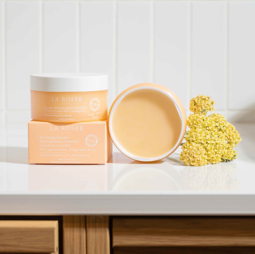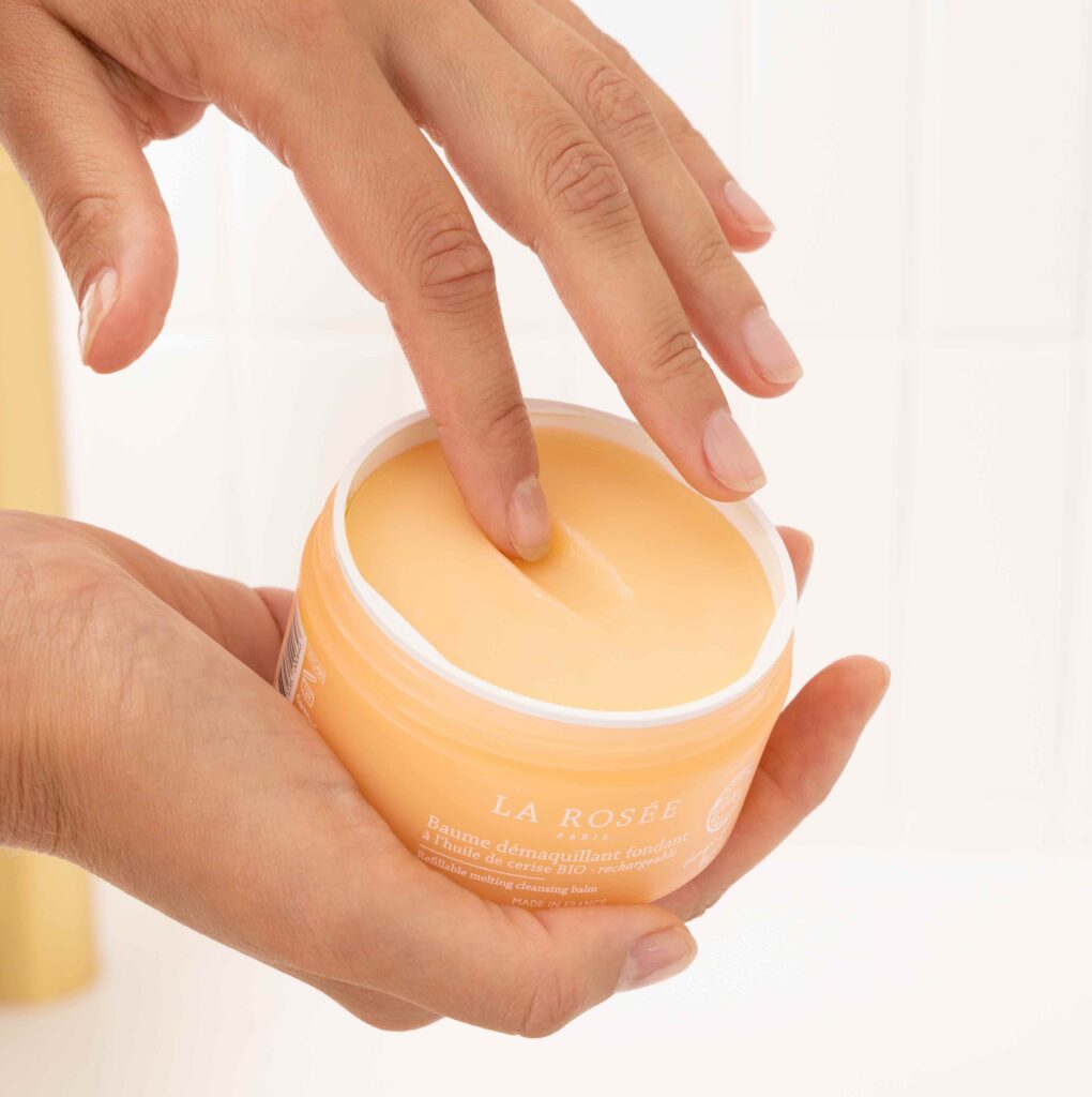 Qui dit maquillage, dit démaquillage, il était donc indispensable de proposer une alternative plus responsable à cette étape cruciale, sachant que 8 femmes sur 10 se maquillent 4 à 5 fois par semaine, et 1 femme sur 2 chaque jour. La Rosée lance donc un baume démaquillant fondant. À l’huile de cerise bio, viennent s’ajouter celles de tournesol et de coco pour nettoyer en profondeur et préserver l’hydratation de l’épiderme en déposant un voile hydratant protecteur non gras sur la peau. Sa texture douce se transforme en huile onctueuse puis en lait au contact de l’eau. Le baume élimine tout, le maquillage (même waterproof), mais aussi les protections solaires ou encore les particules de pollution, sans piquer les yeux, ni laisser de film gras. Là encore, on reste dans le soin, puisque la peau est non seulement démaquillée, mais également apaisée, retrouvant confort et douceur.