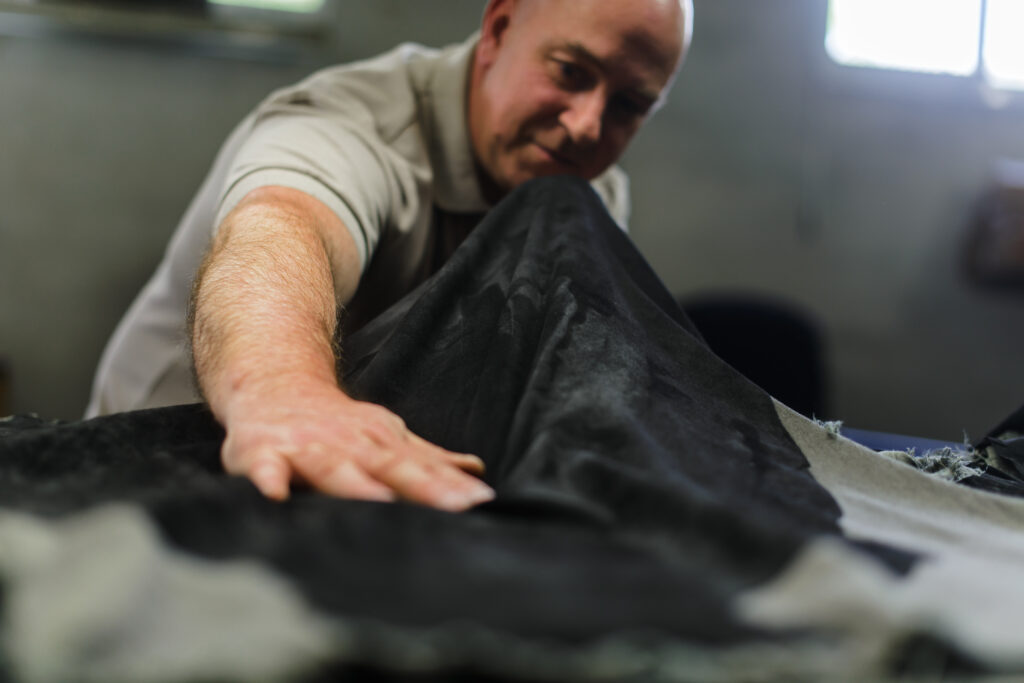 Que l’on mange ou non de la viande, il est important de savoir que cette filière est l’une des rares à valoriser ses déchets avec des produits d’usage et de luxe. Qu’elle est créatrice d’emplois dans toutes les régions, et porteuse d’un savoir-faire français ancestral. Qu’elle est à la pointe de l’encadrement des pratiques d’élevage pour que chaque bête soit la plus possible protégée des marques de vie naturelles — rides, plis, cicatrices — qui témoignent de l’histoire de l’animal et participent de l’authenticité du cuir. La peau d’une bête blessée par des barbelés ne pourra pas être valorisée. Toutes ces considérations sont prises en compte pour améliorer les pratiques d’élevage, prévenir les maladies, maîtriser les gestes clés lors de la vie de l’animal jusqu’à la récupération des peaux.