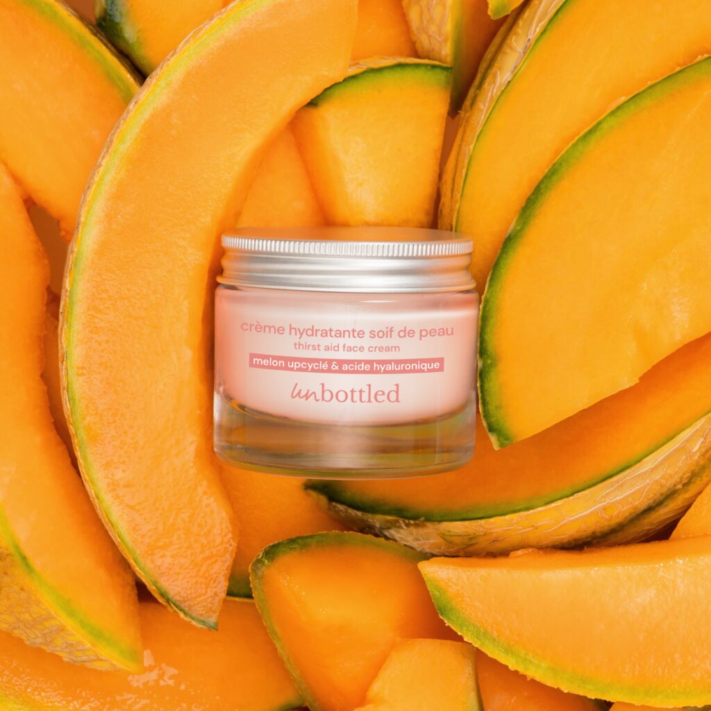 Association du melon et de l’acide hyaluronique avec du collagène végétal, deux ingrédients dont il n’est plus nécessaire de présenter le fort pouvoir désaltérant et repulpant. Un combo entre nature et science pour cette crème de jour qui hydrate durablement et apaise. Sa formule, s’appuyant sur 99 % d’ingrédients d’origine naturelle, protège la barrière cutanée, atténue les rougeurs et procure un confort immédiat. Elle conviendra à toute la famille, et même les enfants dès 3 ans ou bien les femmes enceintes. Sa formule obtient la mention excellente sur Yuka, le tout dans un pot en verre recyclable et rechargeable, garanti sans plastique.