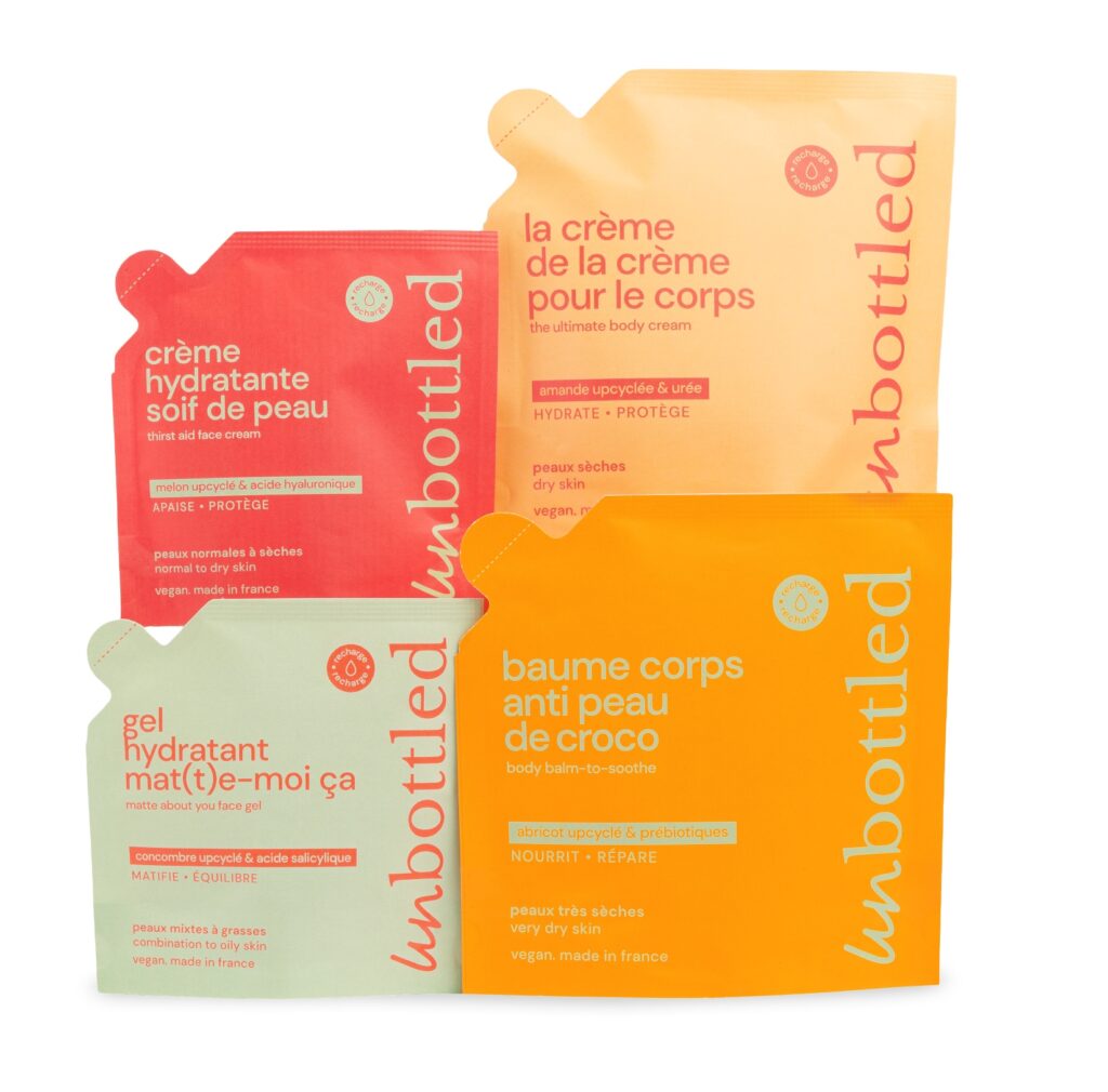 Reste à trouver la formulation parfaite qui respecte à la fois le corps et les valeurs de l’entreprise. Ces quatre nouvelles références s’appuient sur la combinaison d’un extrait de fruit upcyclé et d’un actif dermatologique de pointe, offrant l’assurance de constater rapidement des résultats vraiment visibles. Testées cliniquement, ces formules naturelles et jugées excellentes par Yuka sont évidemment vegan et made in France, mais est-ce vraiment nécessaire de le préciser lorsqu’on connait les valeurs qui animent l’équipe de la marque ? Cette dernière reste d’ailleurs on ne peut plus fidèle à sa mission originelle en proposant ses soins dans des contenants garantis sans plastique (le verre et l’aluminium s’imposent comme des alternatives bien plus vertueuses), et surtout systématiquement rechargeables. Bref, une fois encore, on est convaincu sur le fond mais aussi séduit sur la forme, grâce à des textures enveloppantes et des parfums particulièrement réconfortants.